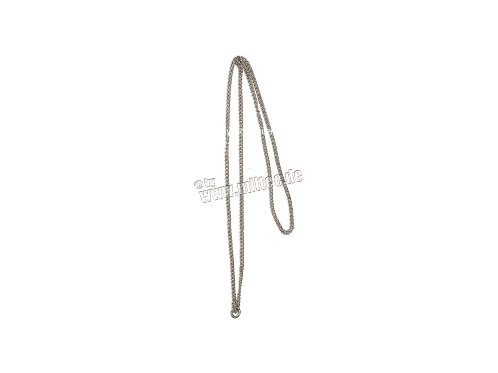 Kvalitní dlouhý niklovaný armádní řetízek na známky , možno použít také na různé přívěsky .Řetízek je velice pevný .